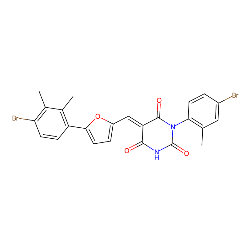 CC1=C(C=CC(=C1)Br)N2C(=O)C(=CC3=CC=C(O3)C4=C(C(=C(C=C4)Br)C)C)C(=O)NC2=O |