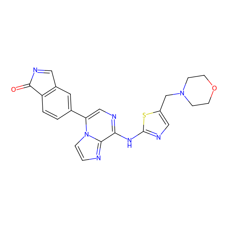 5-[8-[[5-(吗啉-4-甲基)-1,3-噻唑-2-基]氨基]咪唑并[1,2-a]吡嗪-5-基]异吲哚-1-酮 5-[8-[[5-(morpholin-4-ylmethyl)-1,3-thiazol-2-yl]amino]imidazo[1,2-a]pyrazin-5-yl]isoindol-1-one |