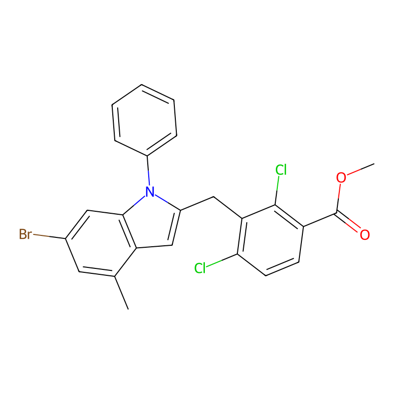 CC1=CC(=CC2=C1C=C(N2C3=CC=CC=C3)CC4=C(C=CC(=C4Cl)C(=O)OC)Cl)Br |
