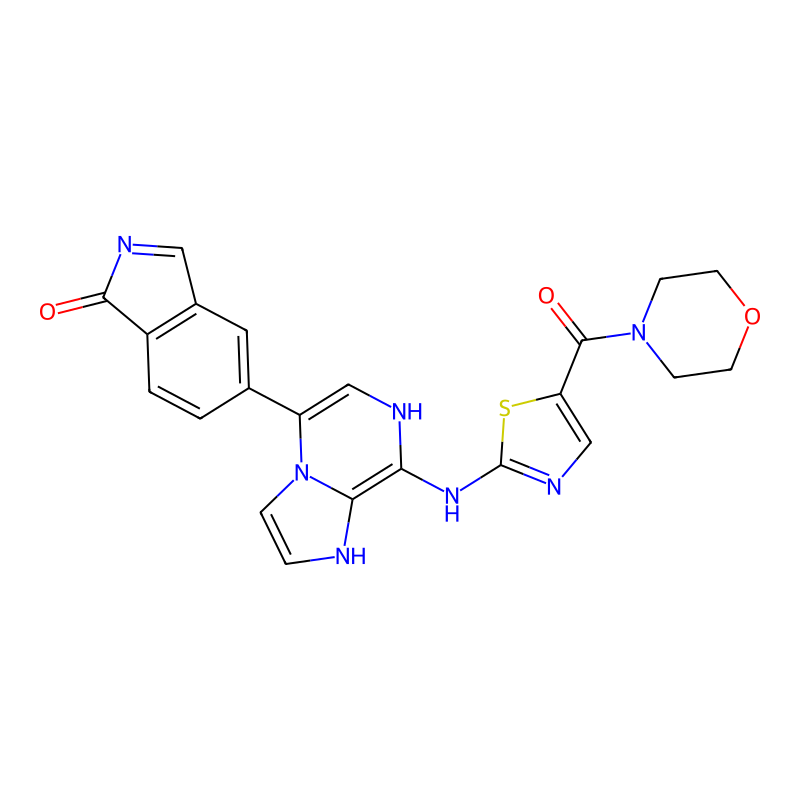 5-[8-[[5-(吗啉-4-羰基)-1,3-噻唑-2-基]氨基]-1,7-二氢咪唑并[1,2-a]吡嗪-5-基]异吲哚-1-酮 5-[8-[[5-(morpholine-4-carbonyl)-1,3-thiazol-2-yl]amino]-1,7-dihydroimidazo[1,2-a]pyrazin-5-yl]isoindol-1-one |