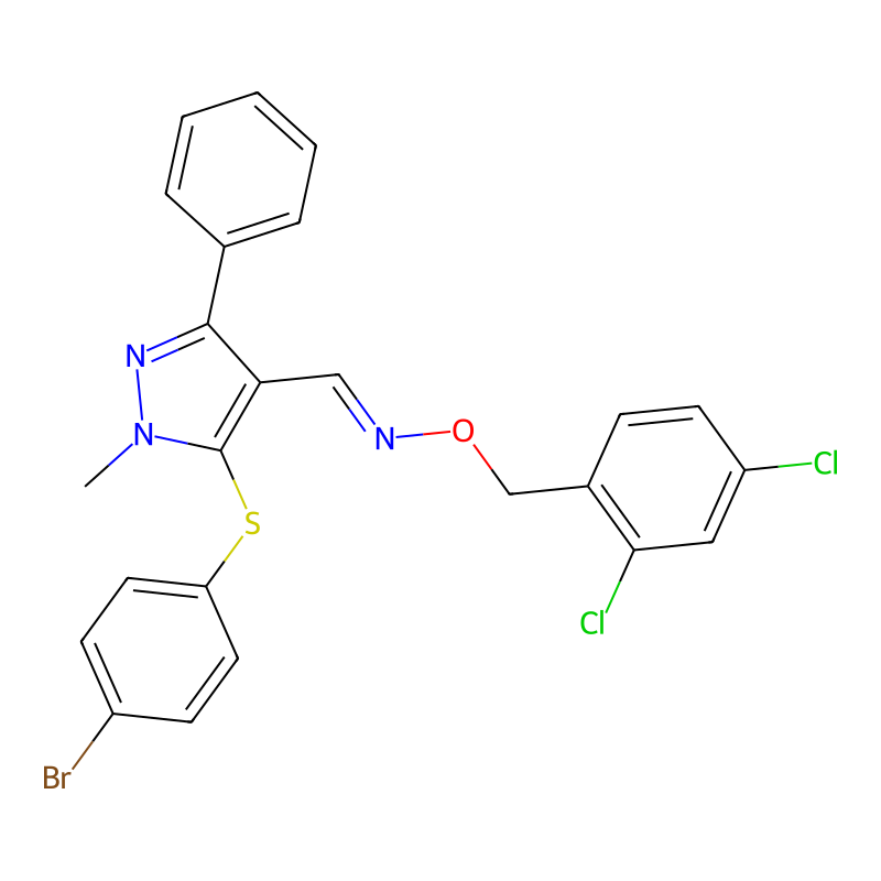 CN1C(=C(C(=N1)C2=CC=CC=C2)C=NOCC3=C(C=C(C=C3)Cl)Cl)SC4=CC=C(C=C4)Br |