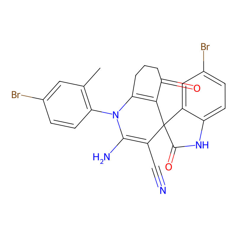 CC1=C(C=CC(=C1)Br)N2C3=C(C(=O)CCC3)C4(C5=C(C=CC(=C5)Br)NC4=O)C(=C2N)C#N |