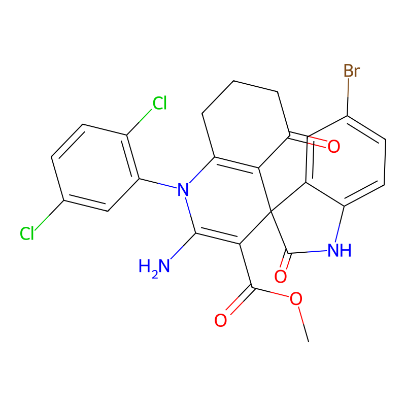 COC(=O)C1=C(N(C2=C(C13C4=C(C=CC(=C4)Br)NC3=O)C(=O)CCC2)C5=C(C=CC(=C5)Cl)Cl)N |