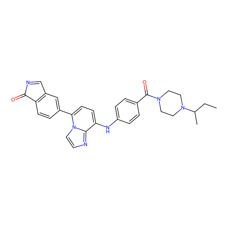 5-[8-[4-(4-丁-2-ylpiperazine-1-羰基)苯胺基]咪唑并[1,2-a]吡啶-5-基]异吲哚-1-酮 5-[8-[4-(4-butan-2-ylpiperazine-1-carbonyl)anilino]imidazo[1,2-a]pyridin-5-yl]isoindol-1-one |