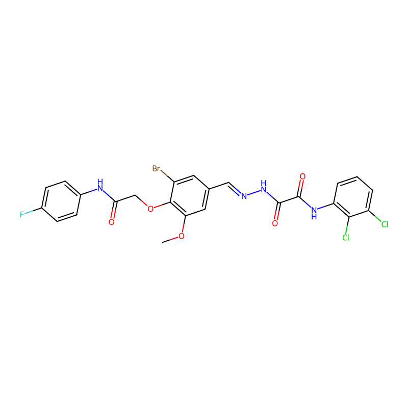 COC1=C(C(=CC(=C1)C=NNC(=O)C(=O)NC2=C(C(=CC=C2)Cl)Cl)Br)OCC(=O)NC3=CC=C(C=C3)F |