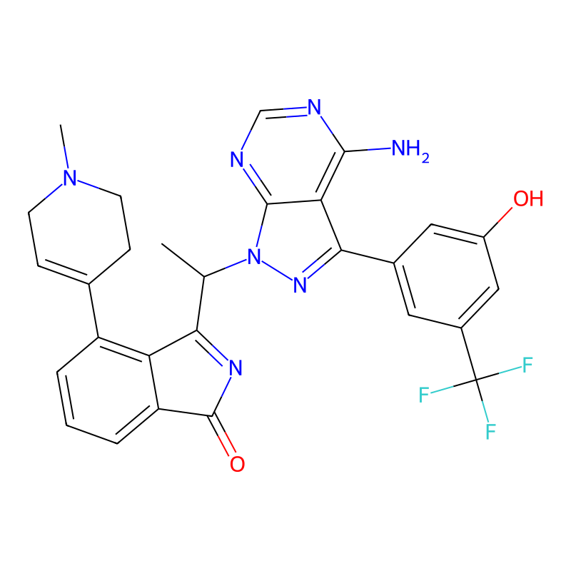 3-[1-[4-氨基-3-[3-羟基-5-(三氟甲基)苯基]吡唑并[3,4-d]嘧啶-1-基]乙基]-4-(1-甲基-3,6-二氢-2H-吡啶-4-基)异吲哚-1-酮 3-[1-[4-amino-3-[3-hydroxy-5-(trifluoromethyl)phenyl]pyrazolo[3,4-d]pyrimidin-1-yl]ethyl]-4-(1-methyl-3,6-dihydro-2H-pyridin-4-yl)isoindol-1-one |