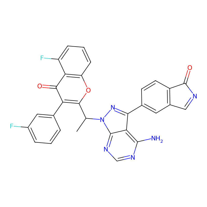 5-[4-氨基-1-[1-[5-氟-3-(3-氟苯基)-4-oxochromen-2-基]乙基]吡唑并[3,4-d]嘧啶-3-基]异吲哚-1-酮 5-[4-amino-1-[1-[5-fluoro-3-(3-fluorophenyl)-4-oxochromen-2-yl]ethyl]pyrazolo[3,4-d]pyrimidin-3-yl]isoindol-1-one |
