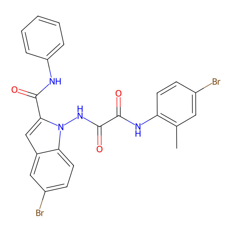 CC1=C(C=CC(=C1)Br)NC(=O)C(=O)NN2C3=C(C=C(C=C3)Br)C=C2C(=O)NC4=CC=CC=C4 |