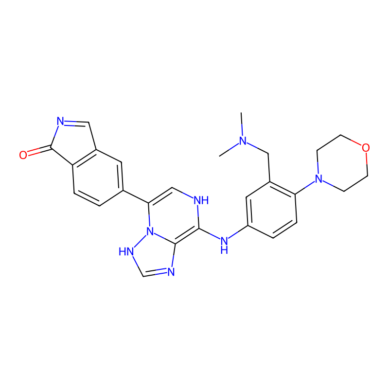 InChI=1S/C26H28N8O2/c1-32(2)15-19-12-20(4-6-22(19)33-7-9-36-10-8-33)31-24-25-29-16-30-34(25)23(14-27-24)17-3-5-21-18(11-17)13-28-26(21)35/h3-6,11-14,16,27,31H,7-10,15H2,1-2H3,(H,29,30) |