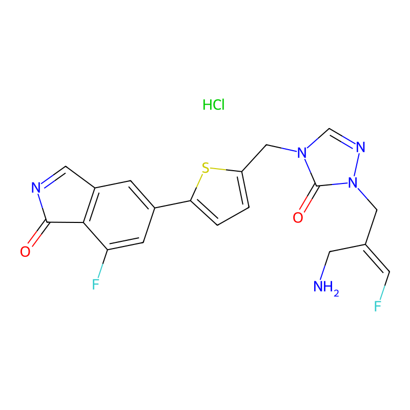 5-[5-[[1-[(E)-2-(氨基甲基)-3-氟-2-烯基]-5-氧代-1,2,4-三唑-4-基]甲基]噻吩-2-基]-7-fluoroisoindol-1-酮;盐酸盐 5-[5-[[1-[(E)-2-(aminomethyl)-3-fluoroprop-2-enyl]-5-oxo-1,2,4-triazol-4-yl]methyl]thiophen-2-yl]-7-fluoroisoindol-1-one;hydrochloride |