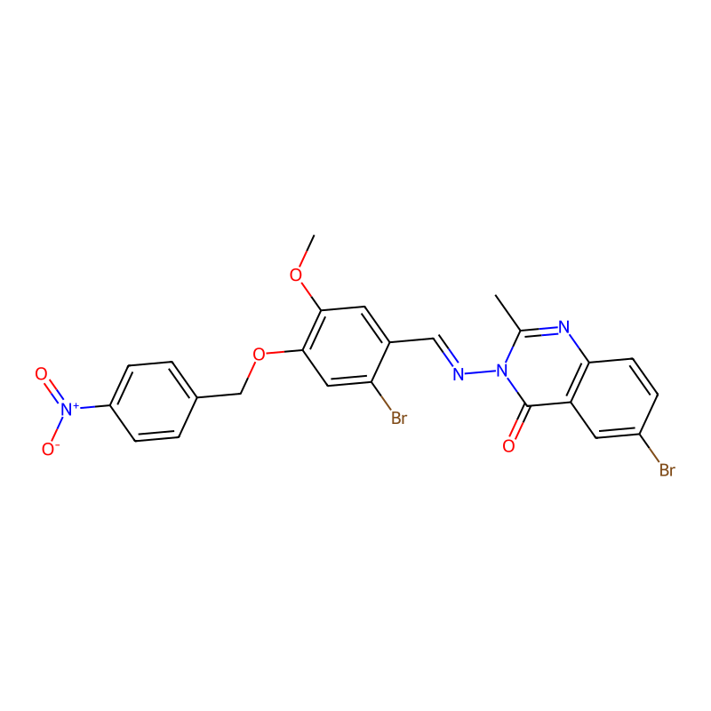 6-溴-3-[[2-溴-5-甲氧基-4-[(4-硝基苯基)甲氧基]苯基]methylideneamino]-2-甲基喹唑啉-4-酮 6-bromo-3-[[2-bromo-5-methoxy-4-[(4-nitrophenyl)methoxy]phenyl]methylideneamino]-2-methylquinazolin-4-one |