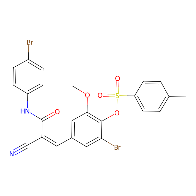 CC1=CC=C(C=C1)S(=O)(=O)OC2=C(C=C(C=C2Br)C=C(C#N)C(=O)NC3=CC=C(C=C3)Br)OC |