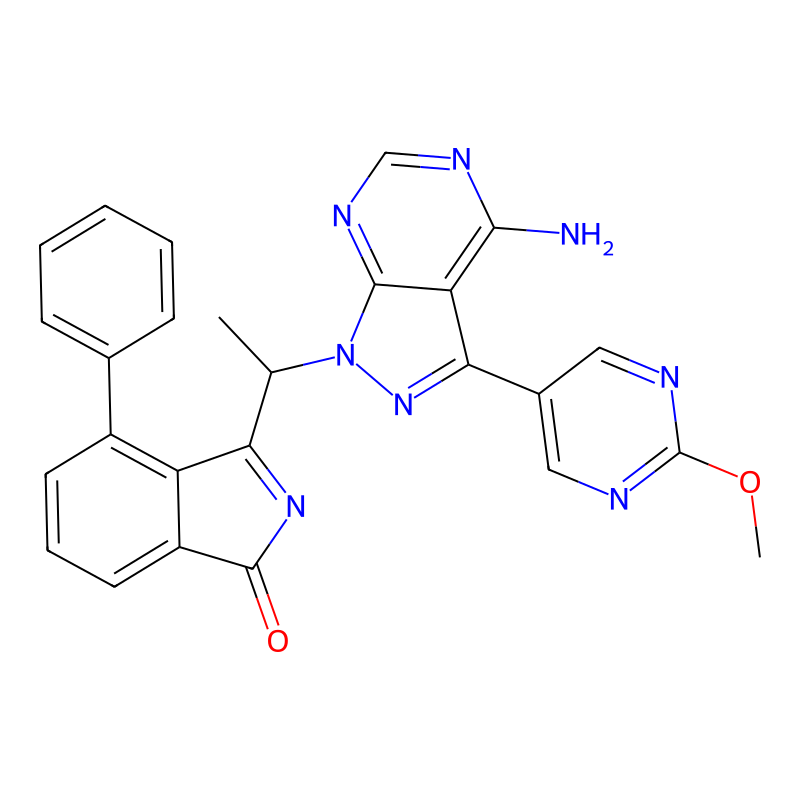 3-[1-[4-氨基-3-(2-甲氧基嘧啶-5-基)吡唑并[3,4-d]嘧啶-1-基]乙基]-4-phenylisoindol-1-酮 3-[1-[4-amino-3-(2-methoxypyrimidin-5-yl)pyrazolo[3,4-d]pyrimidin-1-yl]ethyl]-4-phenylisoindol-1-one |