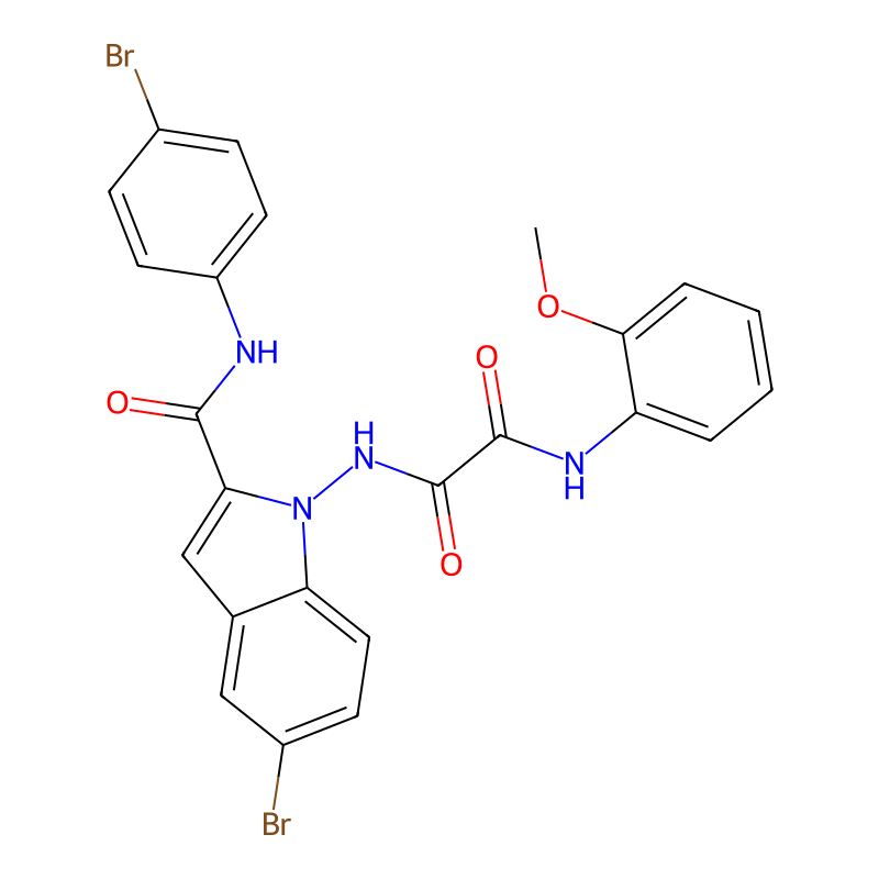 COC1=CC=CC=C1NC(=O)C(=O)NN2C3=C(C=C(C=C3)Br)C=C2C(=O)NC4=CC=C(C=C4)Br |