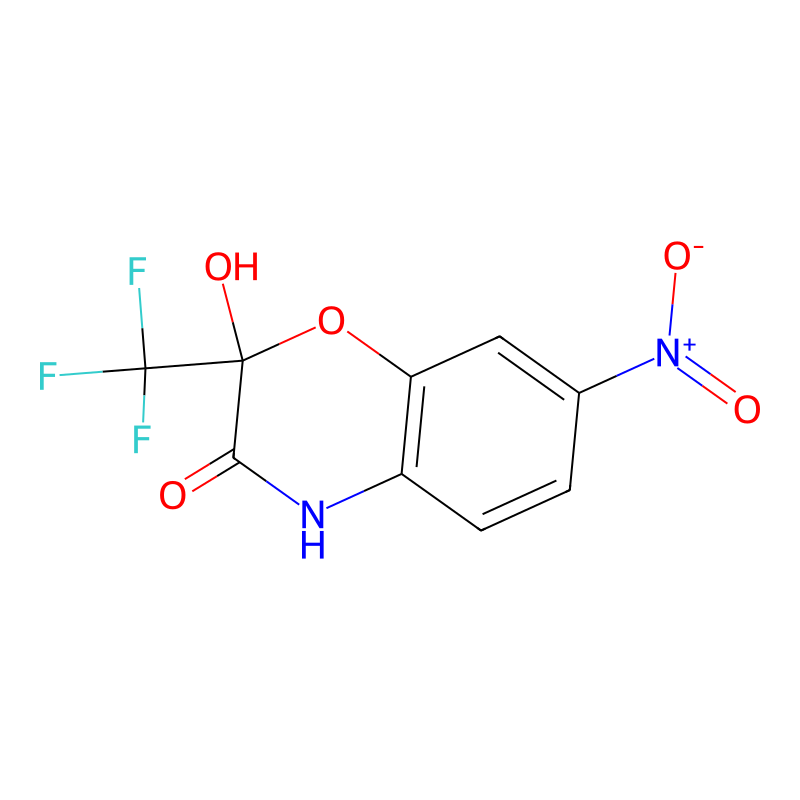 C1=CC2=C(C=C1[N+](=O)[O-])OC(C(=O)N2)(C(F)(F)F)O |