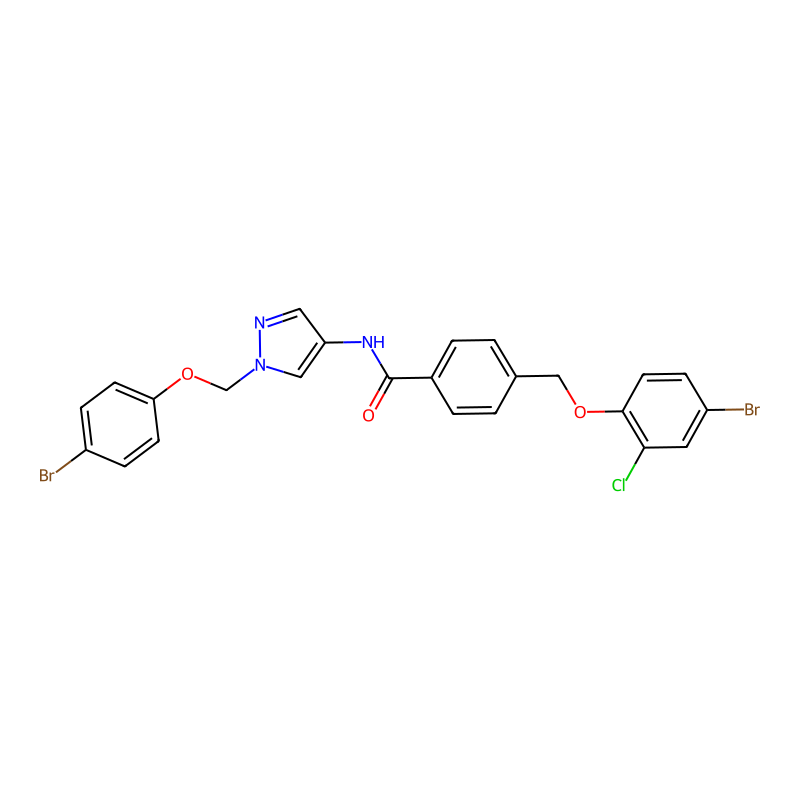 C1=CC(=CC=C1COC2=C(C=C(C=C2)Br)Cl)C(=O)NC3=CN(N=C3)COC4=CC=C(C=C4)Br |