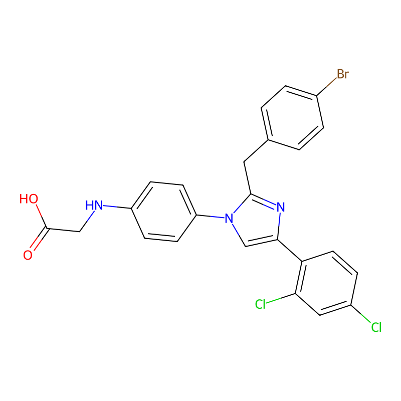 C1=CC(=CC=C1CC2=NC(=CN2C3=CC=C(C=C3)NCC(=O)O)C4=C(C=C(C=C4)Cl)Cl)Br |