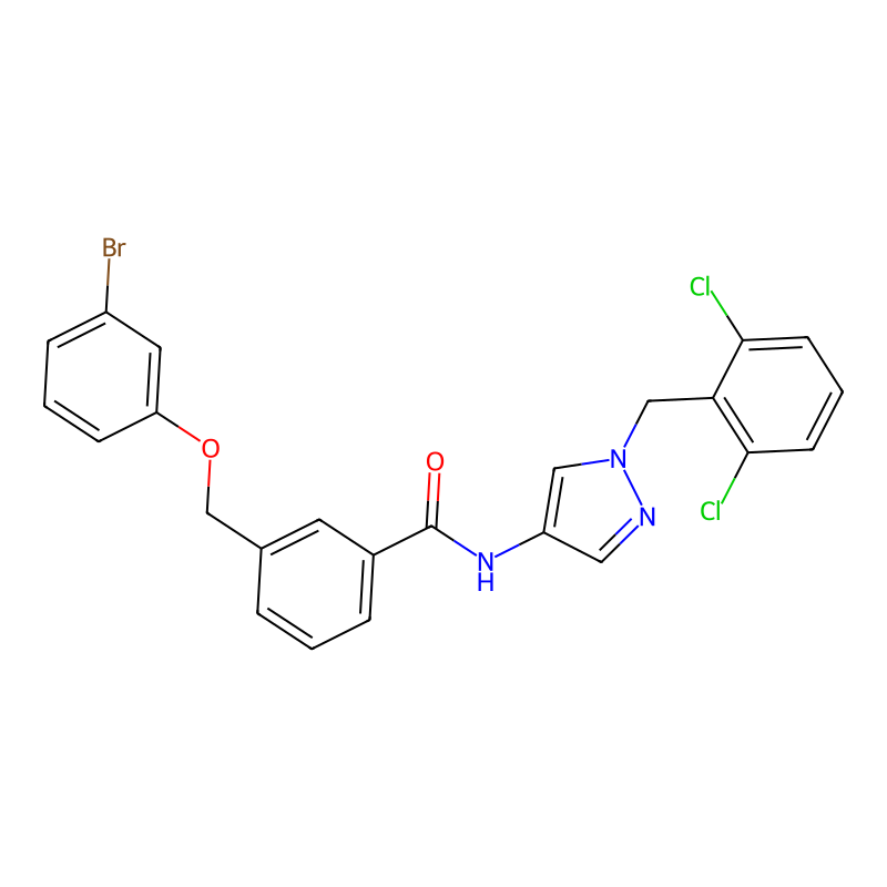 C1=CC(=CC(=C1)C(=O)NC2=CN(N=C2)CC3=C(C=CC=C3Cl)Cl)COC4=CC(=CC=C4)Br |
