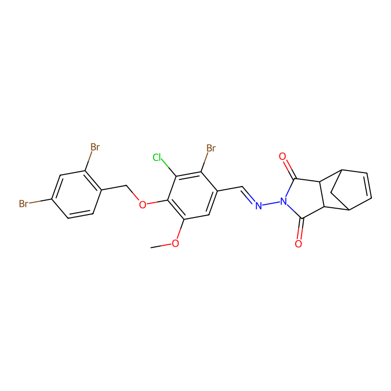COC1=C(C(=C(C(=C1)C=NN2C(=O)C3C4CC(C3C2=O)C=C4)Br)Cl)OCC5=C(C=C(C=C5)Br)Br |
