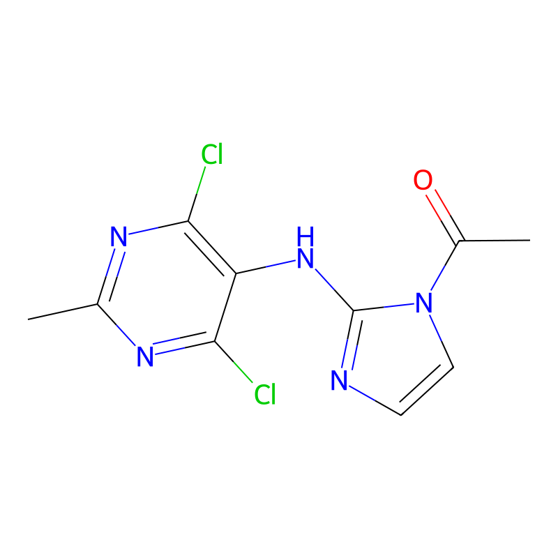 CC1=NC(=C(C(=N1)Cl)NC2=NC=CN2C(=O)C)Cl |