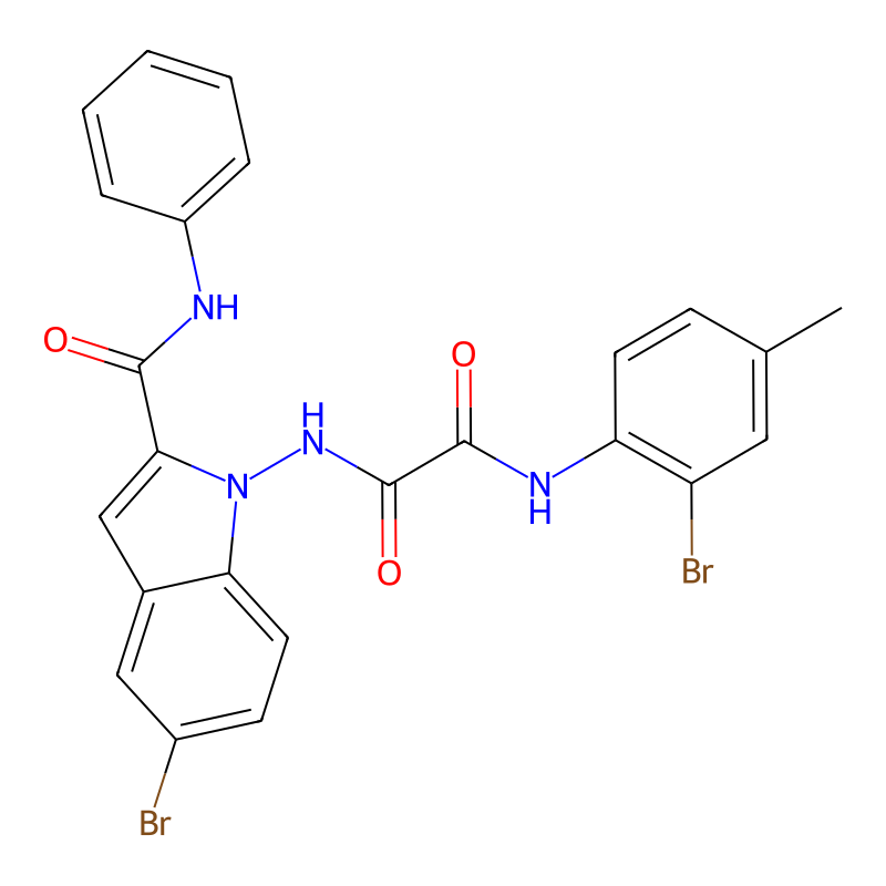 CC1=CC(=C(C=C1)NC(=O)C(=O)NN2C3=C(C=C(C=C3)Br)C=C2C(=O)NC4=CC=CC=C4)Br |