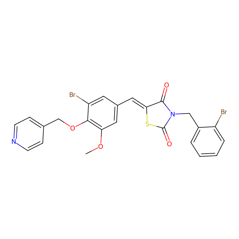 5-[[3-溴-5-甲氧基-4-(吡啶-4-基甲氧基)苯基]亚甲基]-3-[(2-溴苯基)甲基]-1,3-噻唑烷-2,4-二酮 5-[[3-bromo-5-methoxy-4-(pyridin-4-ylmethoxy)phenyl]methylidene]-3-[(2-bromophenyl)methyl]-1,3-thiazolidine-2,4-dione |