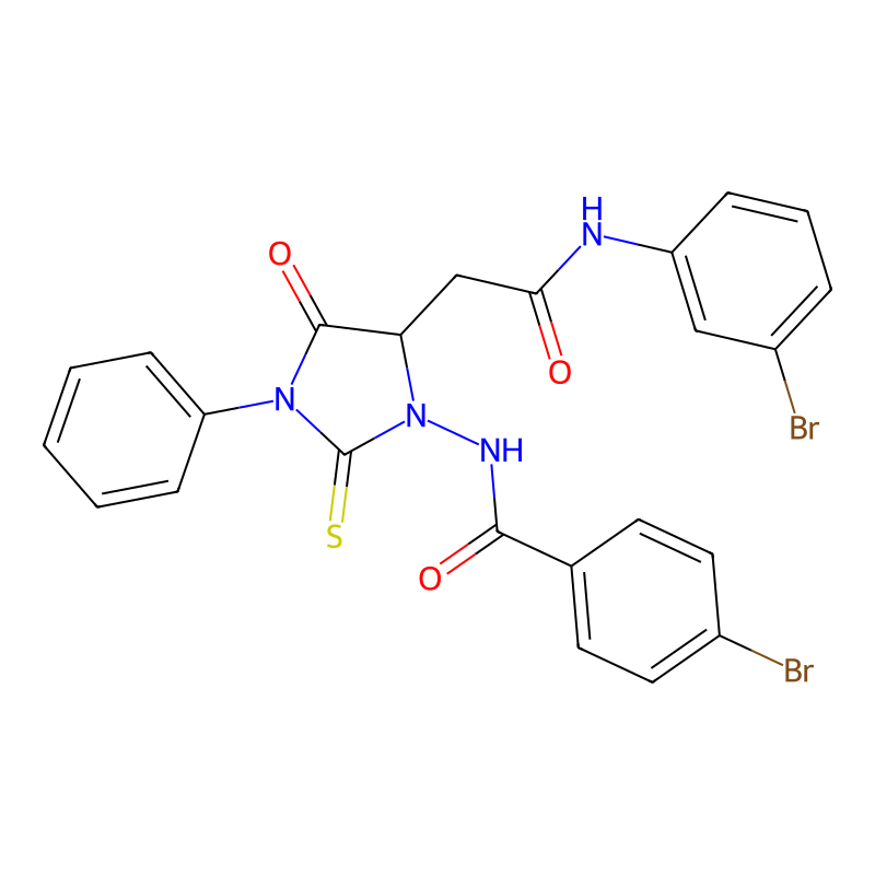 C1=CC=C(C=C1)N2C(=O)C(N(C2=S)NC(=O)C3=CC=C(C=C3)Br)CC(=O)NC4=CC(=CC=C4)Br |