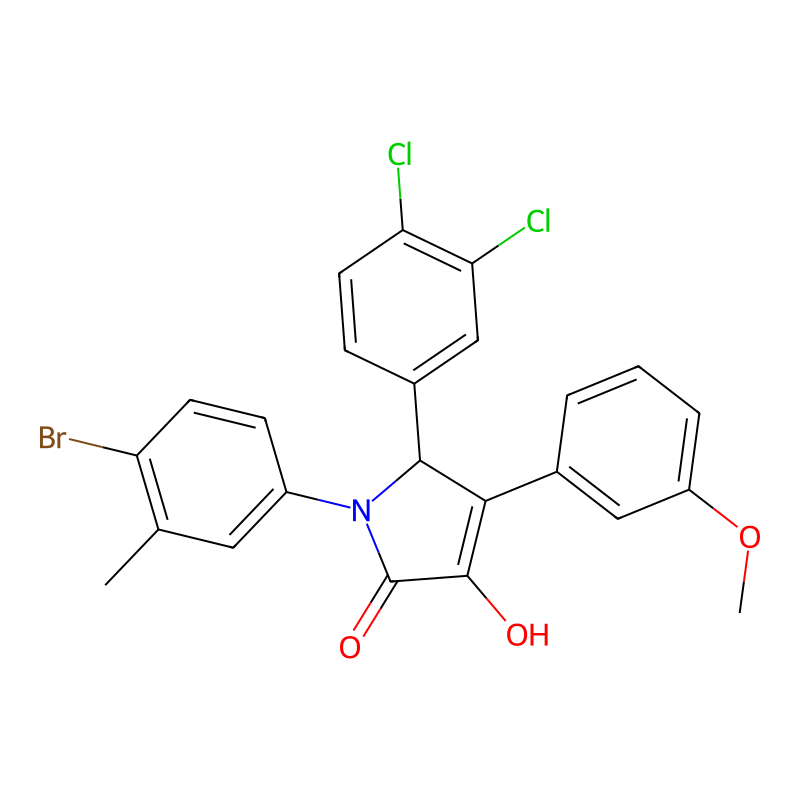 InChI=1S/C24H18BrCl2NO3/c1-13-10-16(7-8-18(13)25)28-22(15-6-9-19(26)20(27)12-15)21(23(29)24(28)30)14-4-3-5-17(11-14)31-2/h3-12,22,29H,1-2H3 |