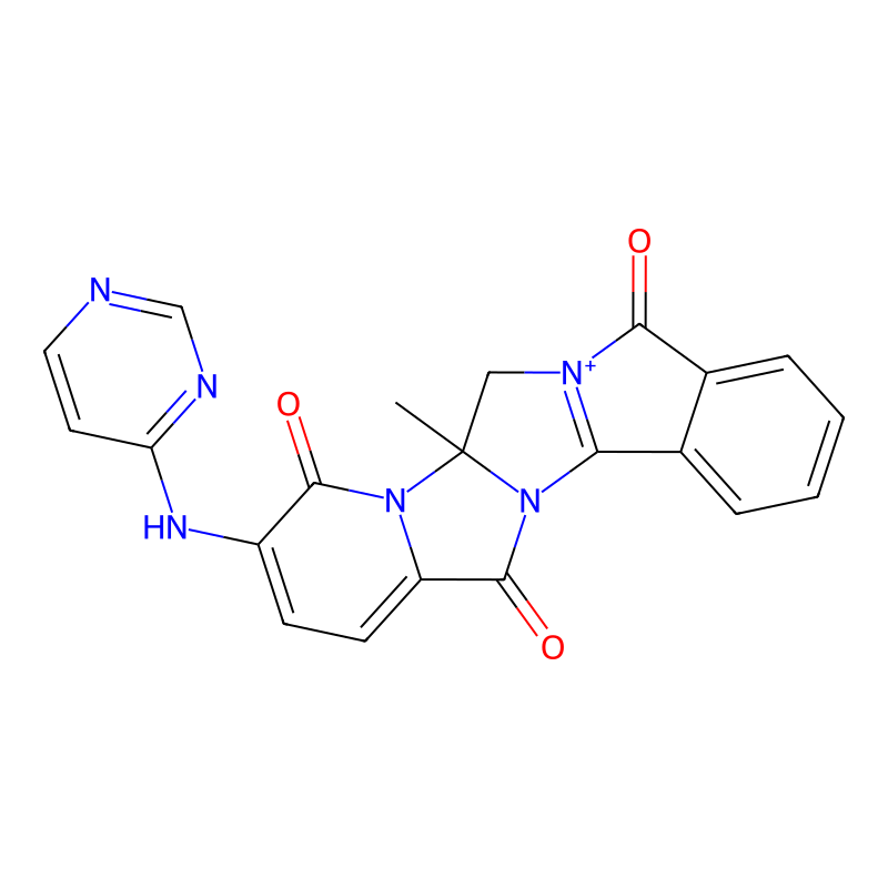 InChI=1S/C21H14N6O3/c1-21-10-25-17(12-4-2-3-5-13(12)18(25)28)27(21)20(30)15-7-6-14(19(29)26(15)21)24-16-8-9-22-11-23-16/h2-9,11H,10H2,1H3/p+1 |