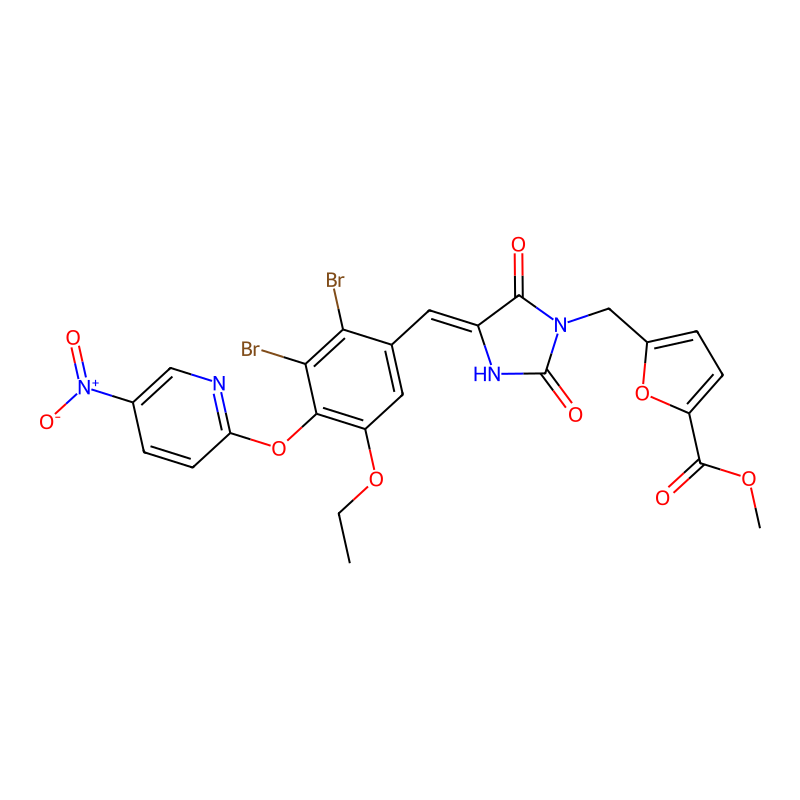 甲基5-[[(4Z)-4-[[2,3-二溴-5-乙氧基-4-(5-硝基吡啶-2-基)苯基]亚甲基]-2,5-二氧代咪唑啉-1-基]甲基]呋喃-2-甲酸基酯 methyl 5-[[(4Z)-4-[[2,3-dibromo-5-ethoxy-4-(5-nitropyridin-2-yl)oxyphenyl]methylidene]-2,5-dioxoimidazolidin-1-yl]methyl]furan-2-carboxylate |