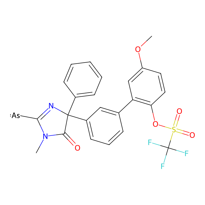 CN1C(=O)C(N=C1[As])(C2=CC=CC=C2)C3=CC=CC(=C3)C4=C(C=CC(=C4)OC)OS(=O)(=O)C(F)(F)F |