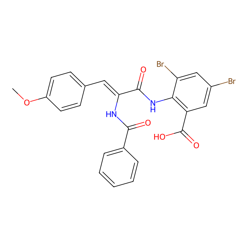 COC1=CC=C(C=C1)C=C(C(=O)NC2=C(C=C(C=C2Br)Br)C(=O)O)NC(=O)C3=CC=CC=C3 |