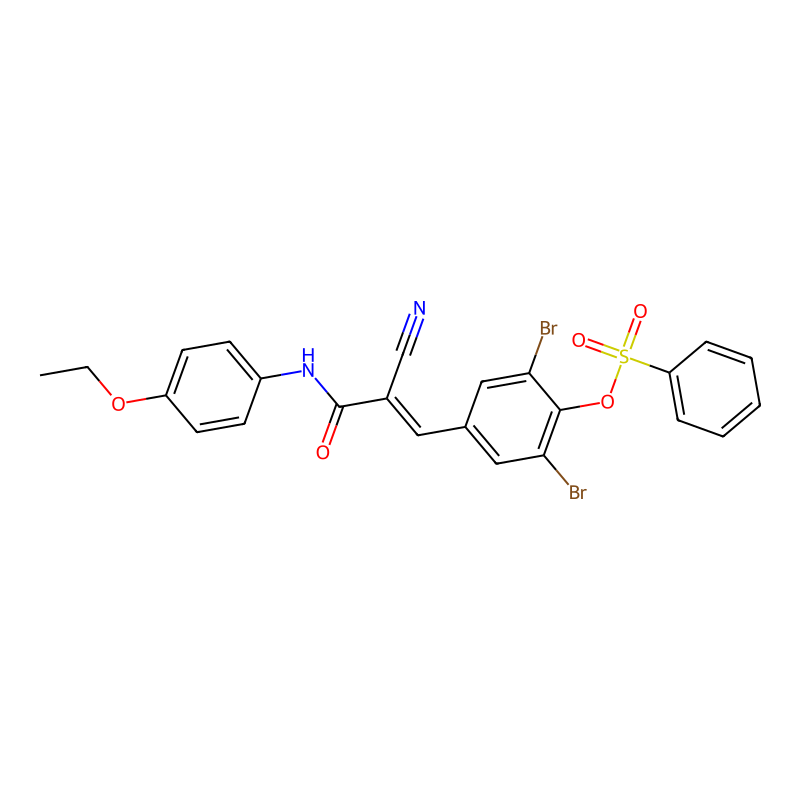 CCOC1=CC=C(C=C1)NC(=O)C(=CC2=CC(=C(C(=C2)Br)OS(=O)(=O)C3=CC=CC=C3)Br)C#N |