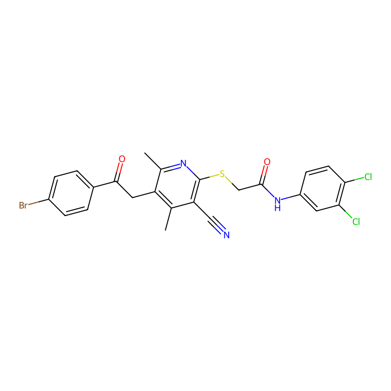 CC1=C(C(=NC(=C1C#N)SCC(=O)NC2=CC(=C(C=C2)Cl)Cl)C)CC(=O)C3=CC=C(C=C3)Br |