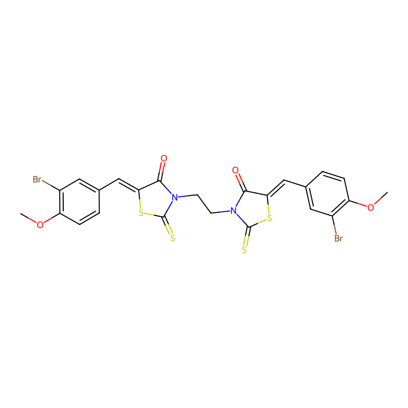 (5Z)-5-[(3-溴-4-甲氧基苯基)亚甲基]-3-[2-[(5E)-5-[(3-溴-4-甲氧基苯基)亚甲基]-4-氧代-2-硫氧代-1,3-噻唑啉-3-基]乙基]-2-硫氧代-1,3-噻唑啉-4-酮 (5Z)-5-[(3-bromo-4-methoxyphenyl)methylidene]-3-[2-[(5E)-5-[(3-bromo-4-methoxyphenyl)methylidene]-4-oxo-2-sulfanylidene-1,3-thiazolidin-3-yl]ethyl]-2-sulfanylidene-1,3-thiazolidin-4-one |