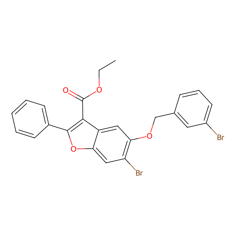 乙基6-溴-5-[(3-溴苯基)甲氧基]-2-苯基-1-苯并呋喃-3-甲酸基酯 ethyl 6-bromo-5-[(3-bromophenyl)methoxy]-2-phenyl-1-benzofuran-3-carboxylate |