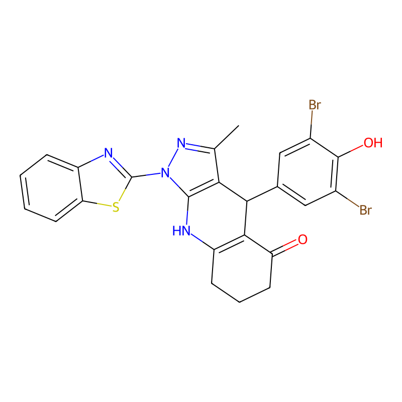 1-(1,3-苯并噻唑-2-基)-4-(3,5-二溴-4-羟基苯基)-3-甲基-6,7,8,9-四氢-4H-吡唑并[3,4-b]喹啉-5-酮 1-(1,3-benzothiazol-2-yl)-4-(3,5-dibromo-4-hydroxyphenyl)-3-methyl-6,7,8,9-tetrahydro-4H-pyrazolo[3,4-b]quinolin-5-one |