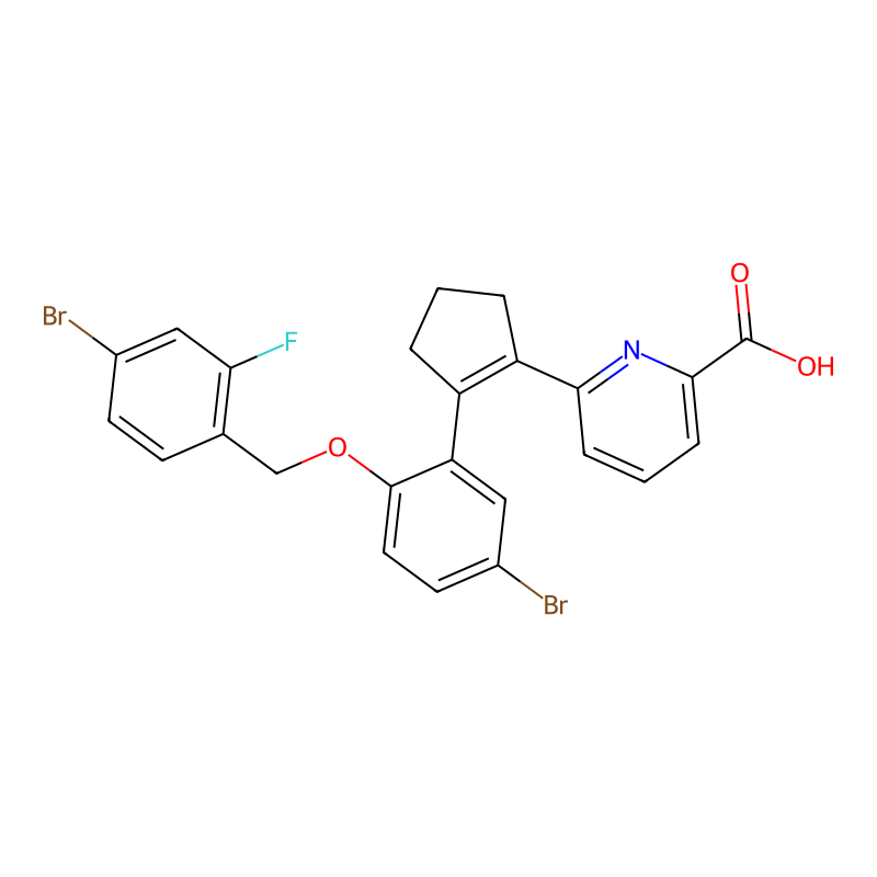 C1CC(=C(C1)C2=C(C=CC(=C2)Br)OCC3=C(C=C(C=C3)Br)F)C4=NC(=CC=C4)C(=O)O |