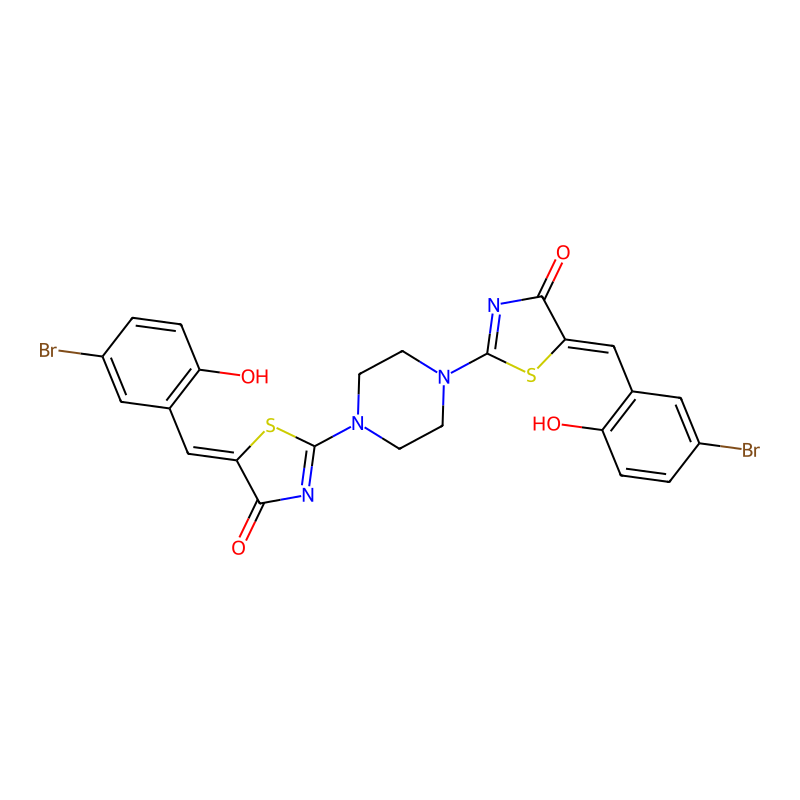 C1CN(CCN1C2=NC(=O)C(=CC3=C(C=CC(=C3)Br)O)S2)C4=NC(=O)C(=CC5=C(C=CC(=C5)Br)O)S4 |