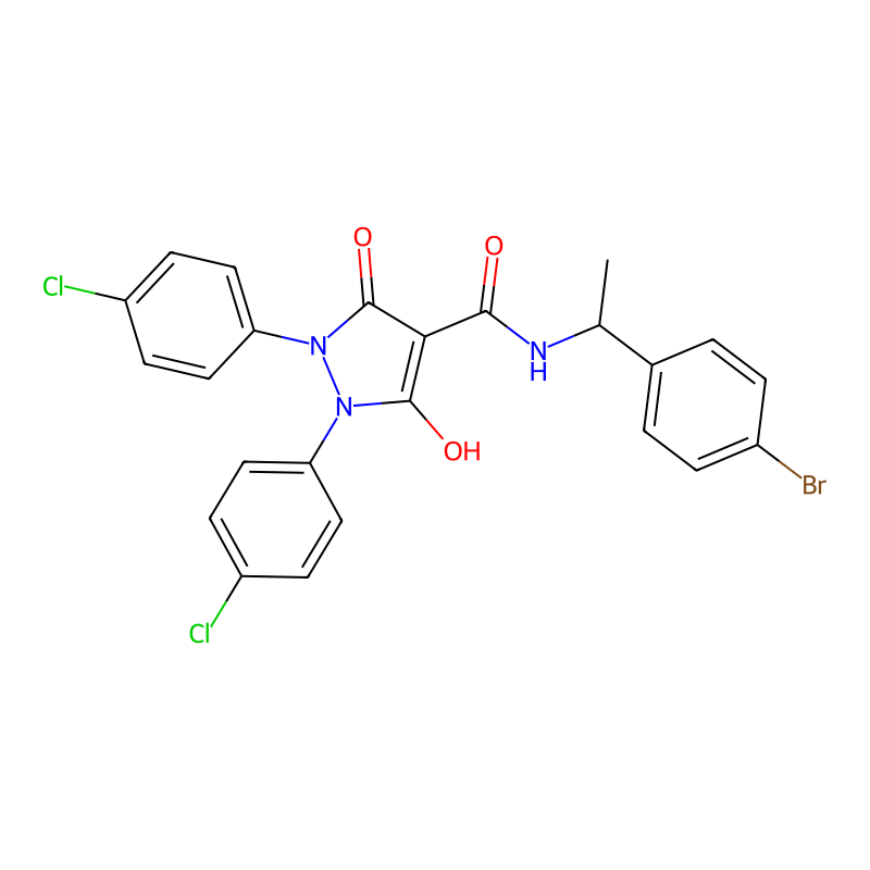 CC(C1=CC=C(C=C1)Br)NC(=O)C2=C(N(N(C2=O)C3=CC=C(C=C3)Cl)C4=CC=C(C=C4)Cl)O |