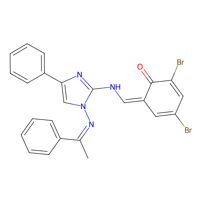 (6E)-2,4-二溴-6-[[[4-苯基-1-[(E)-1-phenylethylideneamino]咪唑-2-基]氨基]亚甲基]环己-2,4-二烯-1-酮 (6E)-2,4-dibromo-6-[[[4-phenyl-1-[(E)-1-phenylethylideneamino]imidazol-2-yl]amino]methylidene]cyclohexa-2,4-dien-1-one |