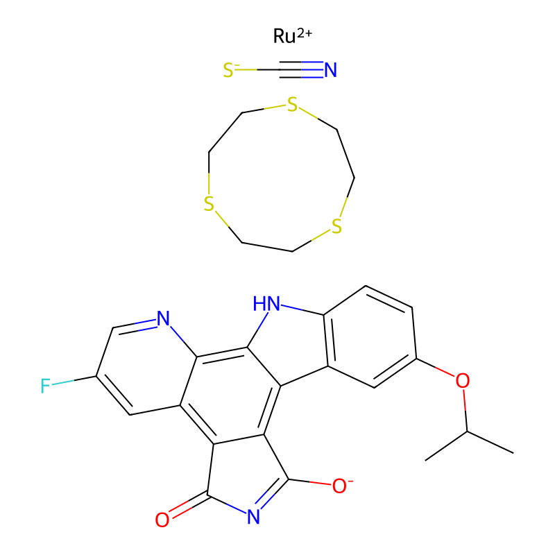 InChI=1S/C20H14FN3O3.C6H12S3.CHNS.Ru/c1-8(2)27-10-3-4-13-11(6-10)14-16-15(19(25)24-20(16)26)12-5-9(21)7-22-17(12)18(14)23-13;1-2-8-5-6-9-4-3-7-1;2-1-3;/h3-8,23H,1-2H3,(H,24,25,26);1-6H2;3H;/q;;;+2/p-2 |