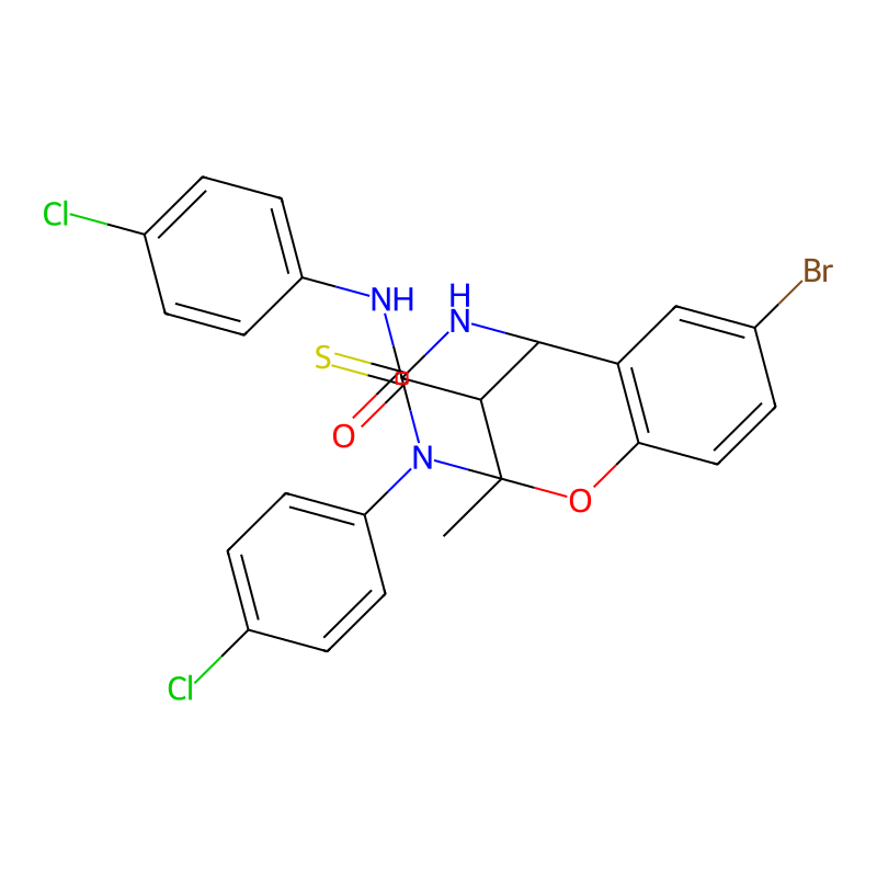 CC12C(C(C3=C(O1)C=CC(=C3)Br)NC(=S)N2C4=CC=C(C=C4)Cl)C(=O)NC5=CC=C(C=C5)Cl |