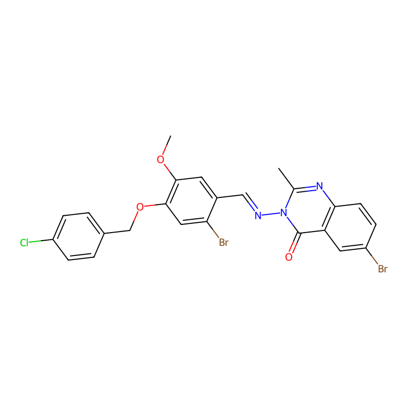 InChI=1S/C24H18Br2ClN3O3/c1-14-29-21-8-5-17(25)10-19(21)24(31)30(14)28-12-16-9-22(32-2)23(11-20(16)26)33-13-15-3-6-18(27)7-4-15/h3-12H,13H2,1-2H3 |