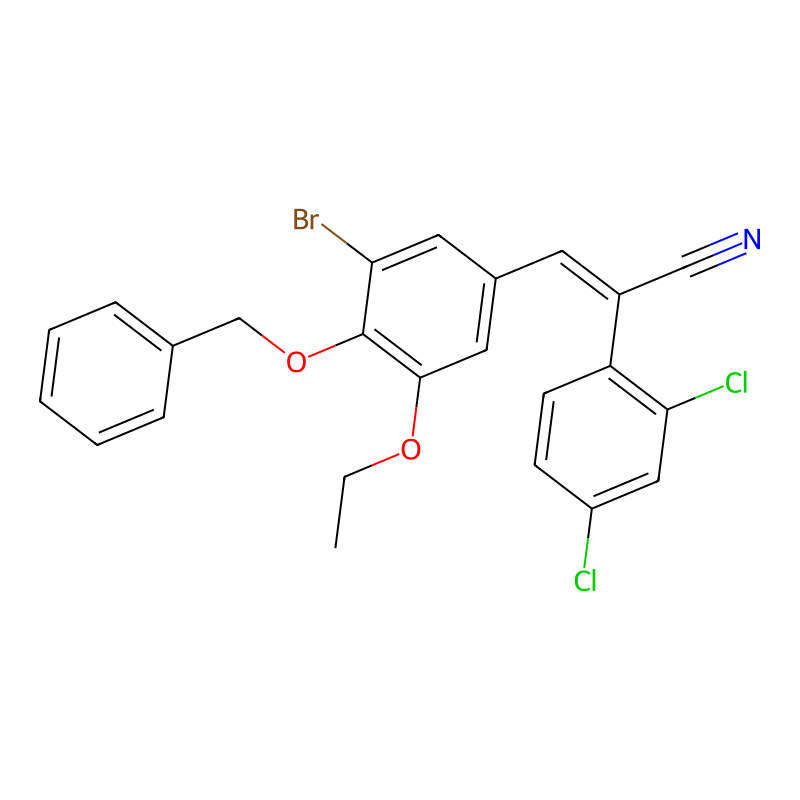 CCOC1=C(C(=CC(=C1)C=C(C#N)C2=C(C=C(C=C2)Cl)Cl)Br)OCC3=CC=CC=C3 |