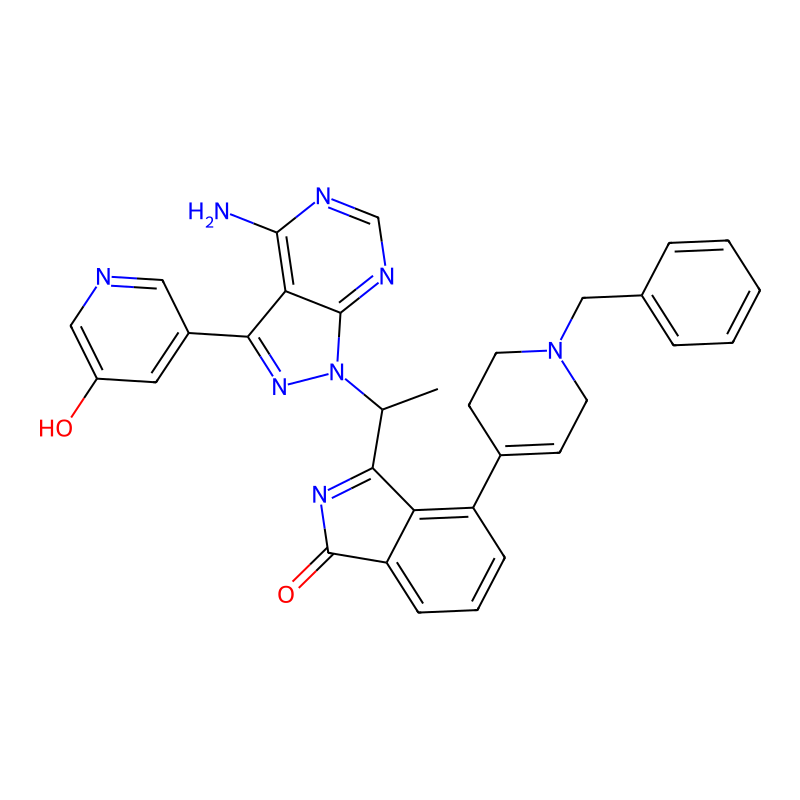 3-[1-[4-氨基-3-(5-羟基吡啶-3-基)吡唑并[3,4-d]嘧啶-1-基]乙基]-4-(1-苄基-3,6-二氢-2H-吡啶-4-基)异吲哚-1-酮 3-[1-[4-amino-3-(5-hydroxypyridin-3-yl)pyrazolo[3,4-d]pyrimidin-1-yl]ethyl]-4-(1-benzyl-3,6-dihydro-2H-pyridin-4-yl)isoindol-1-one |