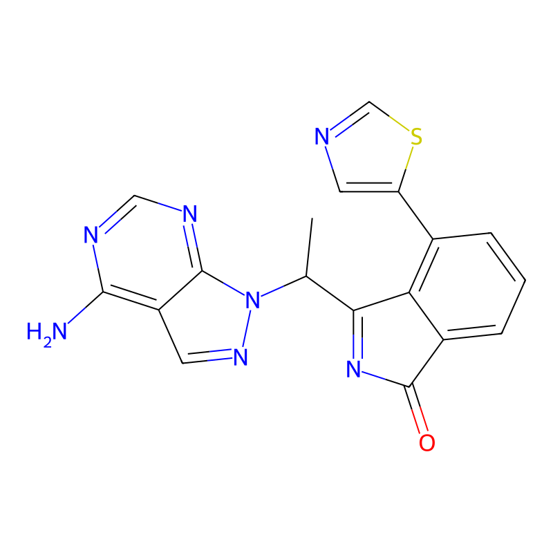 3-[1-(4-氨基吡唑并[3,4-d]嘧啶-1-基)乙基]-4-(1,3-噻唑-5-基)异吲哚-1-酮 3-[1-(4-aminopyrazolo[3,4-d]pyrimidin-1-yl)ethyl]-4-(1,3-thiazol-5-yl)isoindol-1-one |