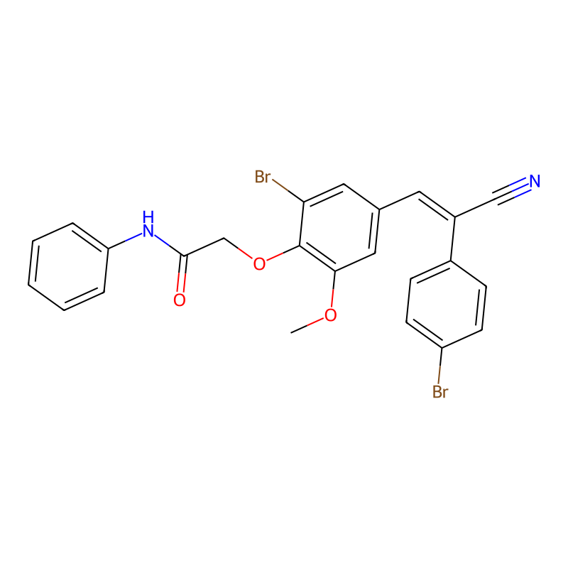 COC1=C(C(=CC(=C1)C=C(C#N)C2=CC=C(C=C2)Br)Br)OCC(=O)NC3=CC=CC=C3 |