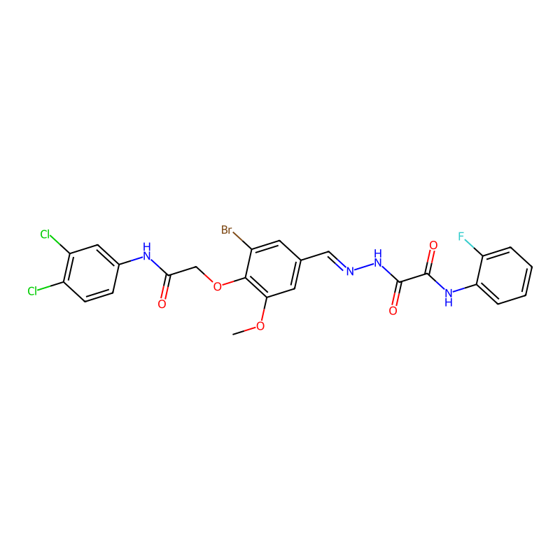 COC1=C(C(=CC(=C1)C=NNC(=O)C(=O)NC2=CC=CC=C2F)Br)OCC(=O)NC3=CC(=C(C=C3)Cl)Cl |