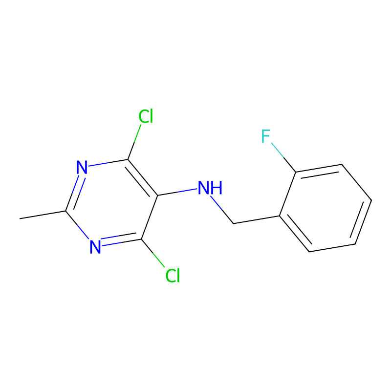 CC1=NC(=C(C(=N1)Cl)NCC2=CC=CC=C2F)Cl |